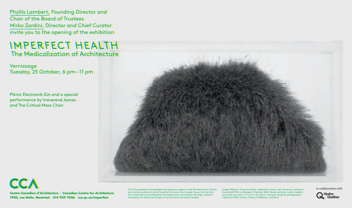 Pollen, pollution, toxic materials that make up the built environment, globalized industrial food production, reclaimed manufacturing landscapes, unbalanced population demographics, sedentary and indoor lifestyles, and efforts to fight death are becoming imperfect materials for architecture to explore. Emerging as trends like healthy cities, green buildings, fit cities, global cities, re-use cities, tailored cities, these strategies suggest inspired solutions, but could also address isolated concerns which privilege specific users or conditions. The focus on problems sometimes creates conflicting agendas and disregards the complexity of the urban fabric.
